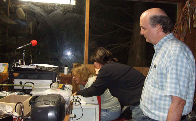 Laura, Molly & Eric in garage, 9/28/08